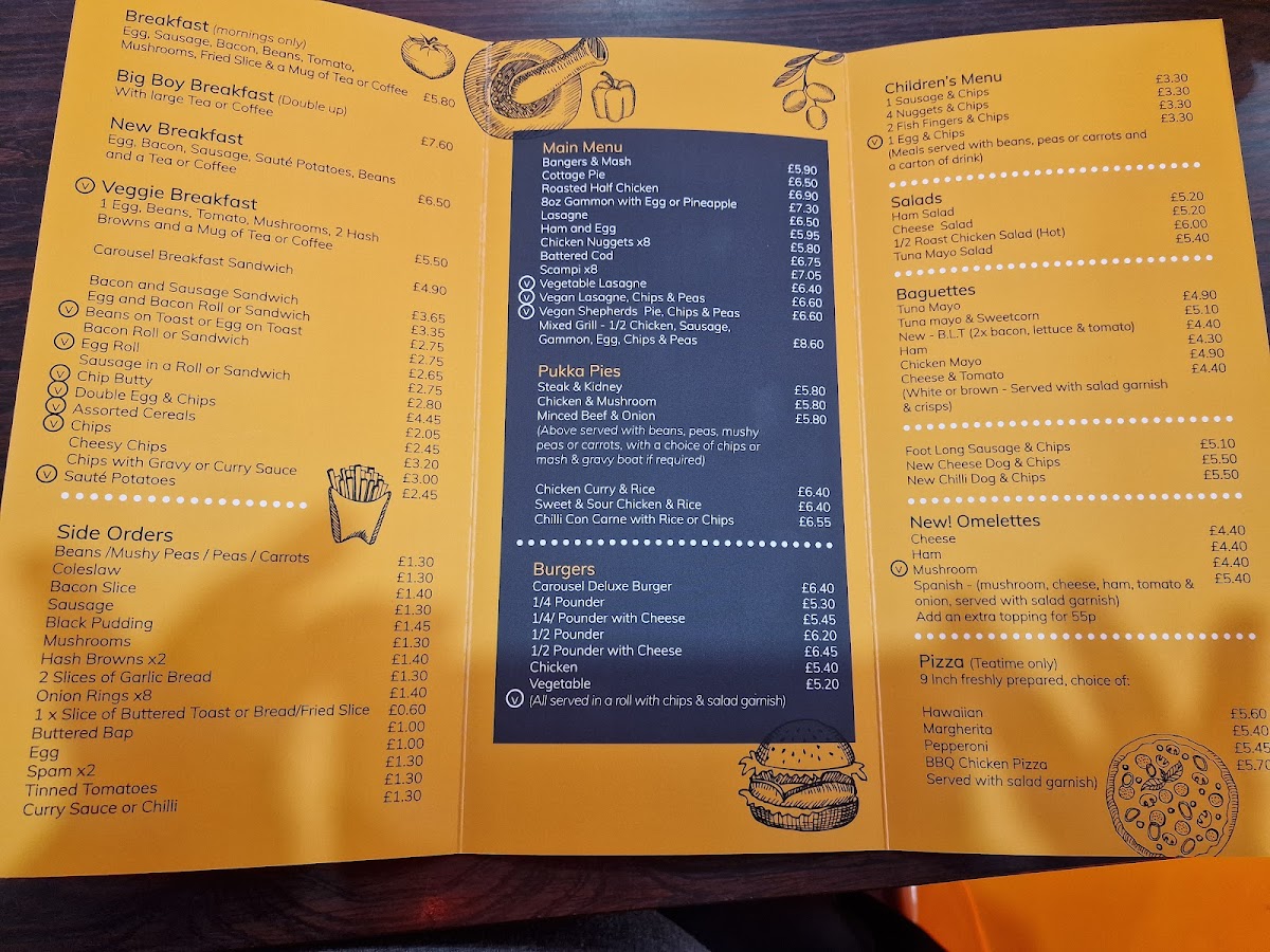 When it comes to the menu, Carousel Cafe offers an enticing selection of dishes. Start with a refreshing salad, with options like the Ham Salad or the Tuna Mayo Salad, each at reasonable prices ranging from £6.20 to £7.00. If you’re in the mood for something classic, don't miss the all steak pie or the divine pizza that has received rave reviews.